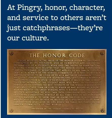 Pingry最特别的是它的Honor Code。从1926年开始,每一年,从学生到老师到工作人员,每一个人都必须把Honor Code从头到尾阅读一遍,并且签名,不管是新生还是老生。有点保证书的意思。这个保证书可不是个形式,签完就算了哦!没表现好的话,时时刻刻周围都会有人提醒你,在我们的Honor Code里,这种情况下你应该怎么做啊?不断的强化这些价值观。难怪我们有家长直呼:“这精神境界堪比独立宣言!”